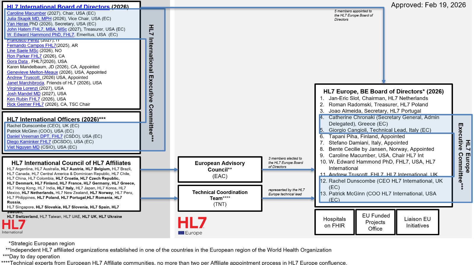 The four Board members marked by (*) form the HL7 Europe Executive Committee.